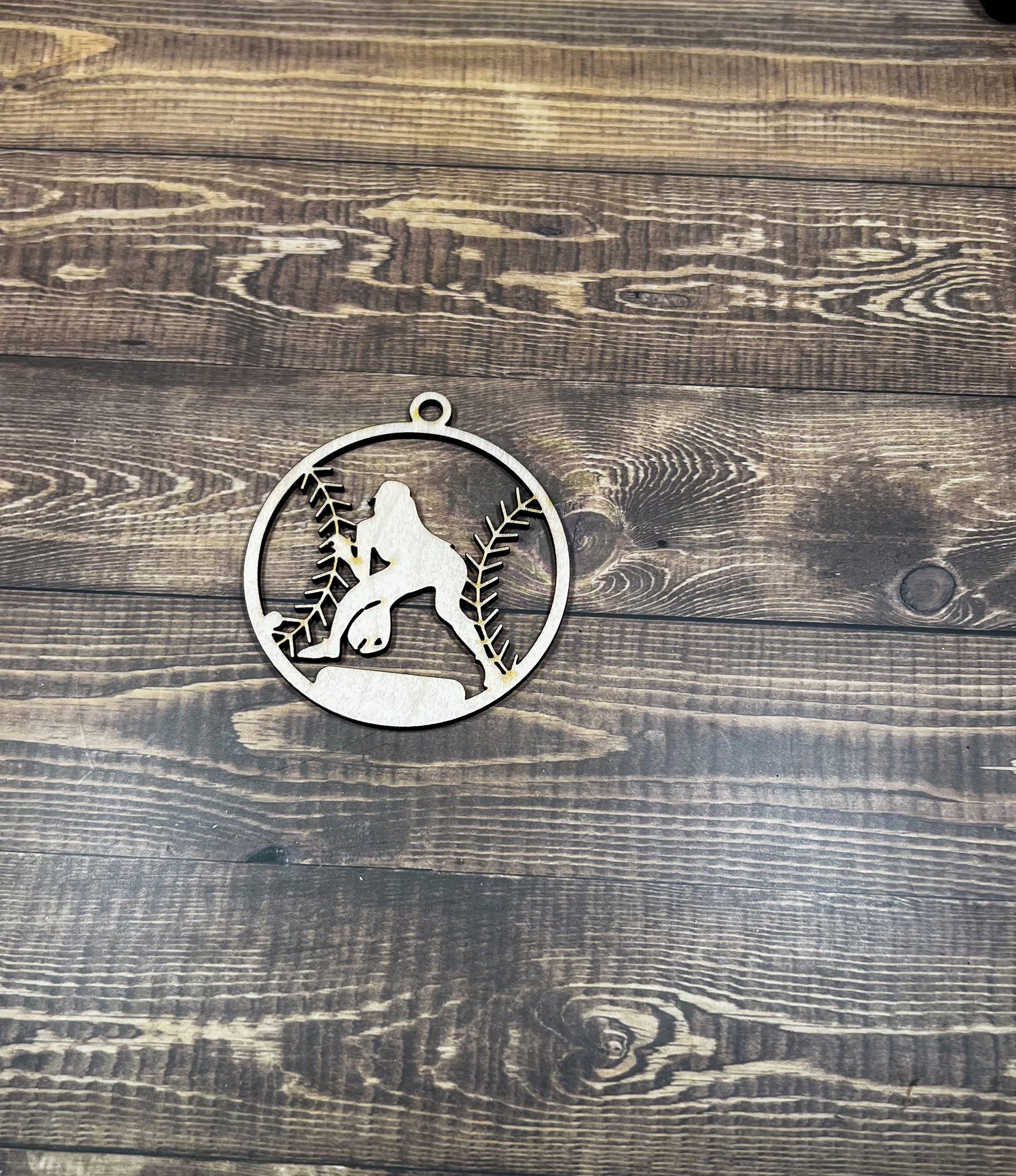 Softball Ornament, Personalized Ornament, Wooden Family Ornament , Laser Engraved Wood Ornament
